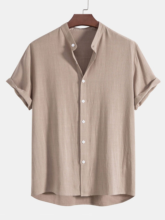 Leinenhemd Herren Kurzarm mit Stehkragen