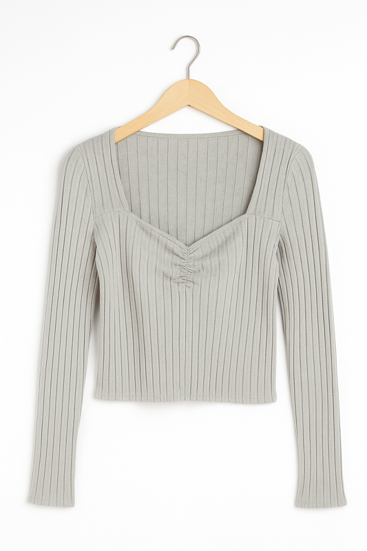 Langarm-Top mit Sweetheart-Ausschnitt aus Geripptem Stretchmaterial