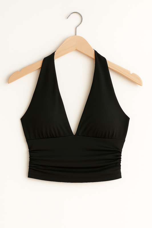 Crop Top Damen mit Wickel-V-Ausschnitt und Geraffter Taille