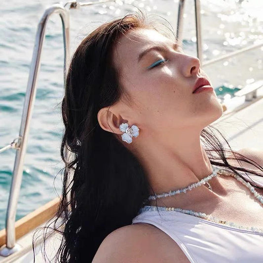 Ayna | Stilvolle Blumen-Emaille-Ohrstecker in Sanftem Blau