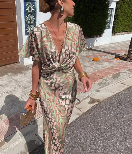 Beatrix | Elegantes Midi Kleid Damen mit Verdrehtem V-Ausschnitt
