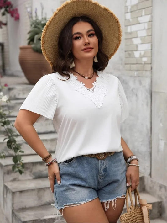 Alessia | Elegante Bluse Damen mit Floraler Spitze und Plissierten Ärmeln