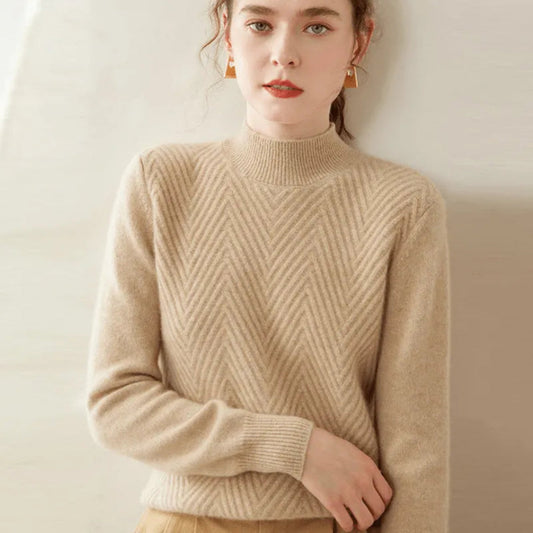 Damenpullover aus Merinowolle mit Mandarin-Kragen