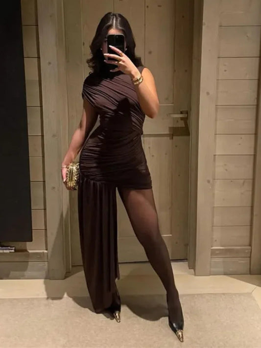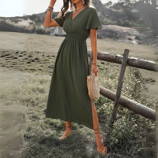 Breathable V-Neck Midi Dress for Women with Slit and Elastic Waist