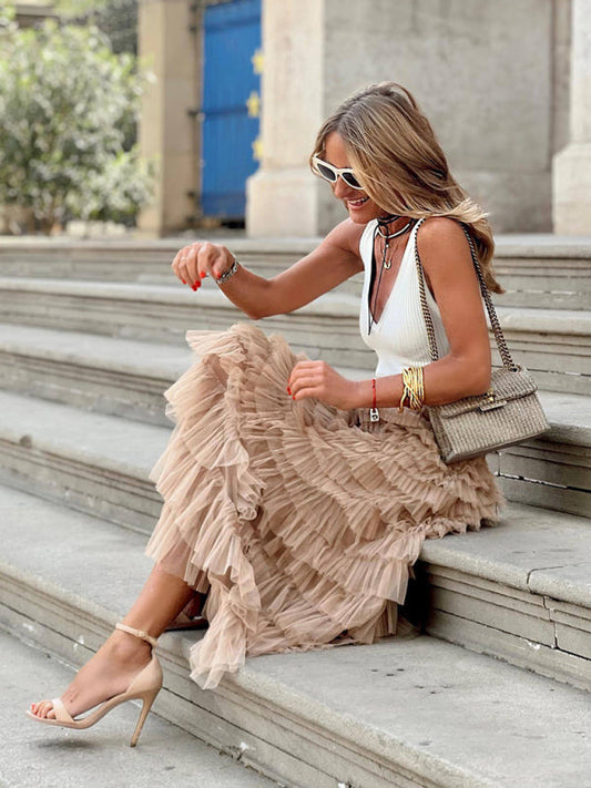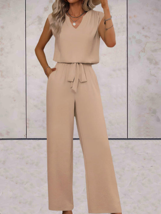 Camilla | Elegant Sleeveless Blouse Set with Lace Neckline and Pants