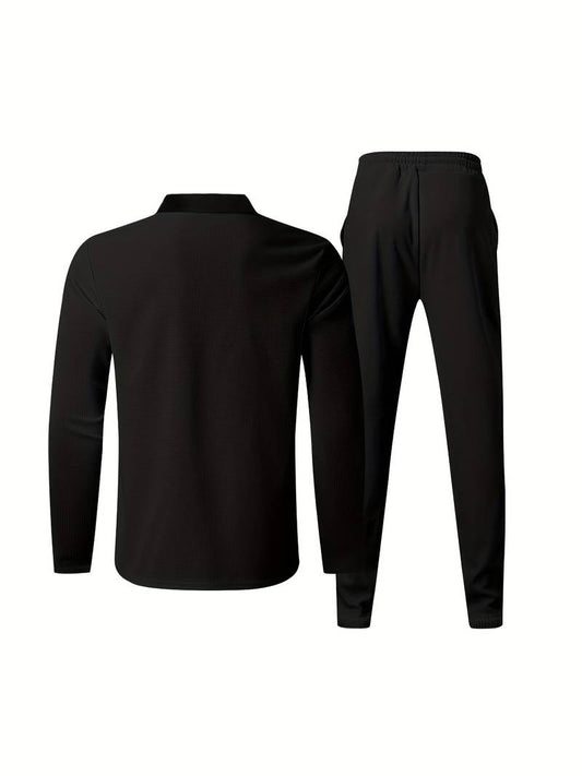 Two-piece loungewear set made of cotton blend with V-neck and wide-leg pants