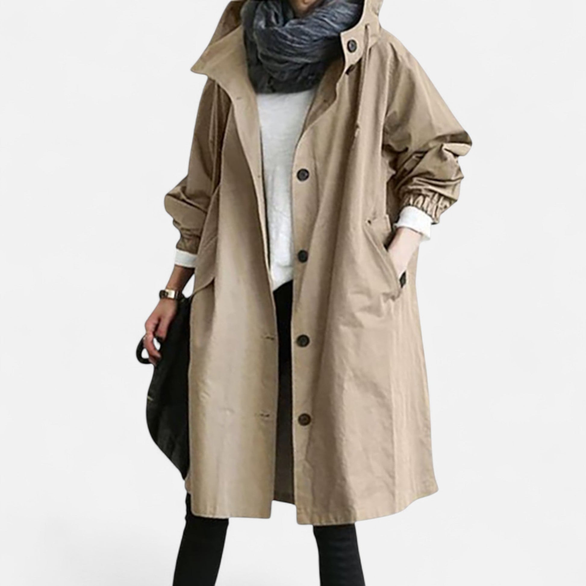 Women's transitional coat with hood Lightweight long coat for spring and autumn