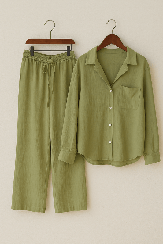 Set 2 pezzi con camicetta ampia e pantaloni – Miscela traspirante di cotone e lino